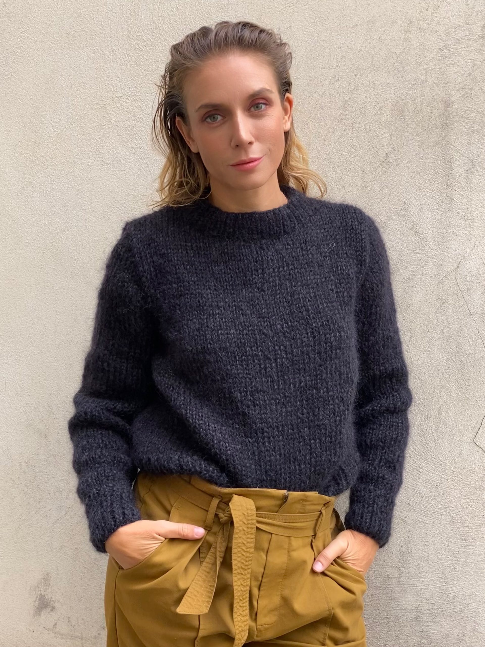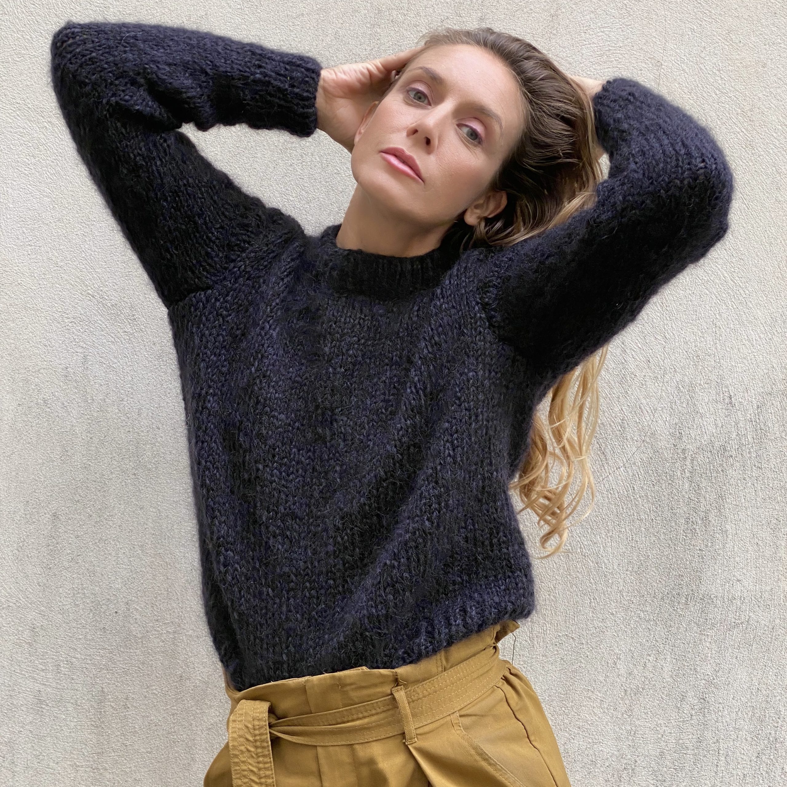 PULL À COL ROND NOIR EN LAINE MOHAIR