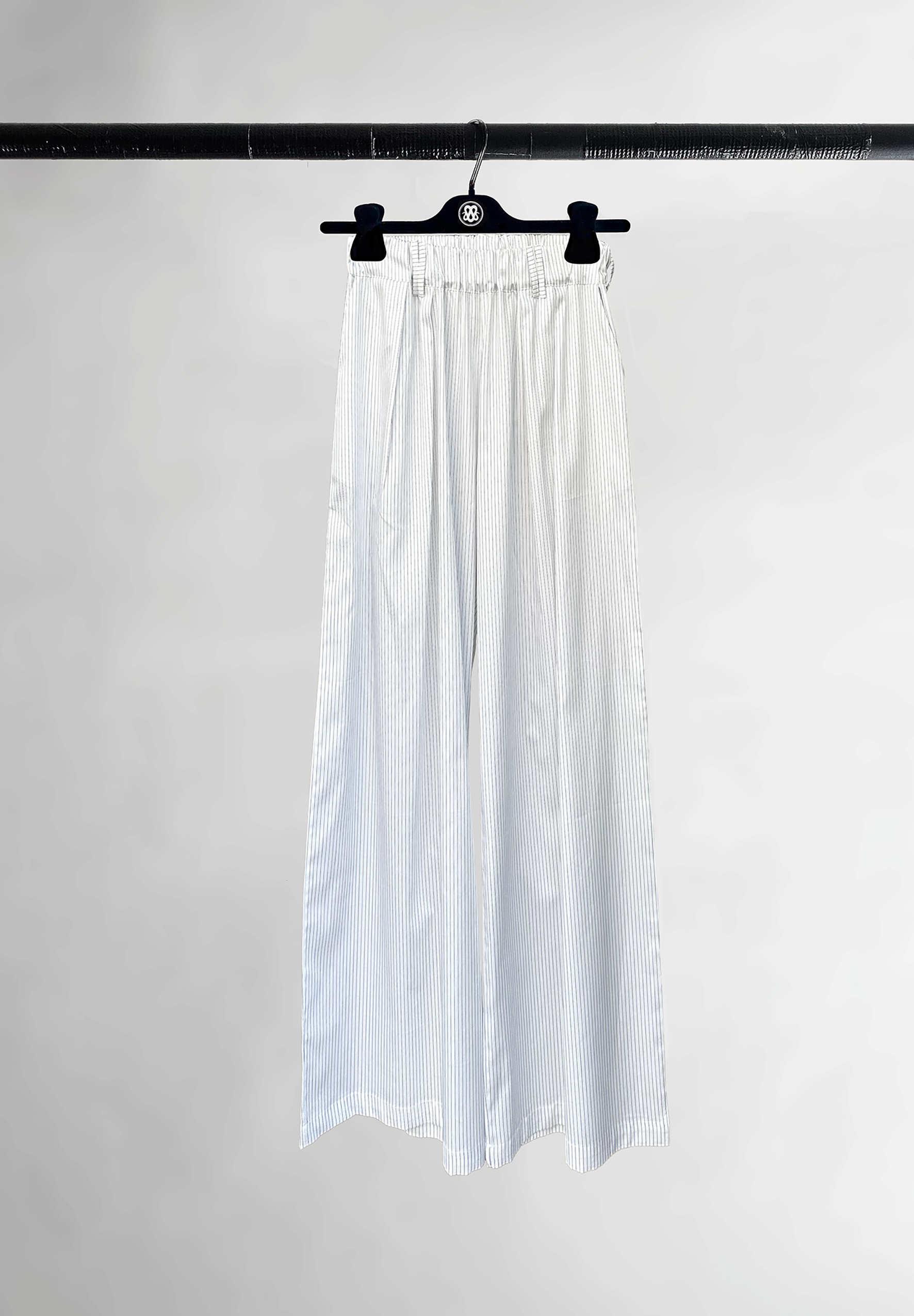 PANTALON ÉLASTIQUÉ RAYURE NOIRE ET BLANCHE EN POPELINE DE COTON