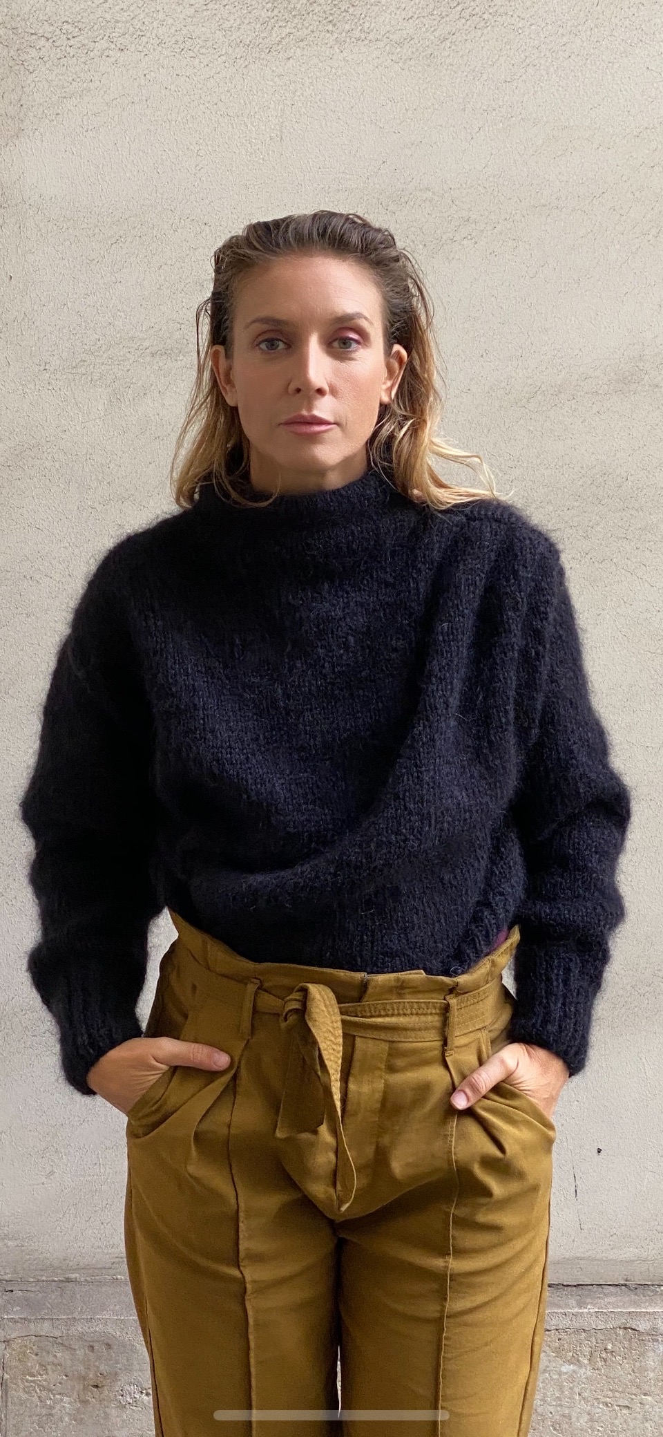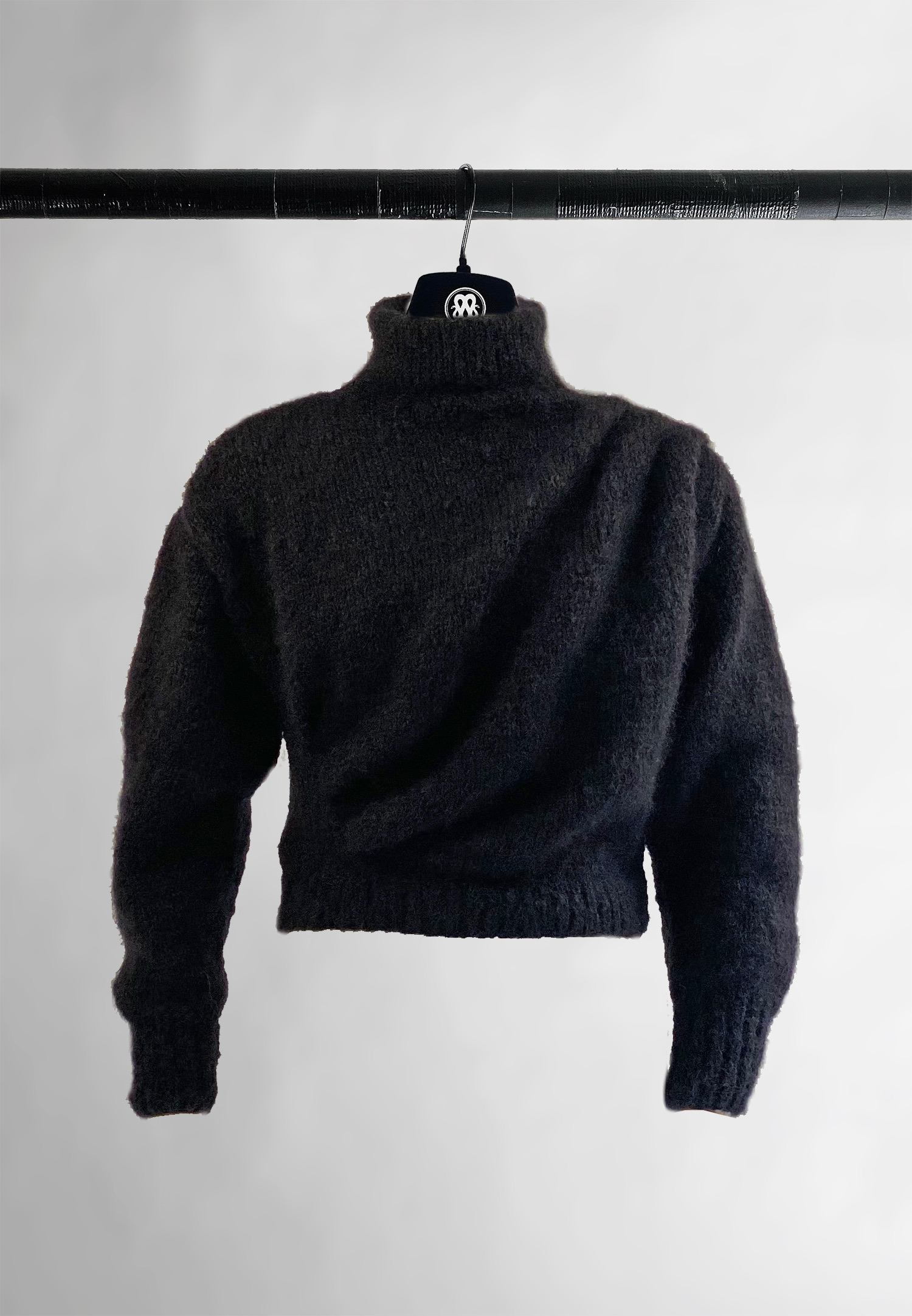 PULL NOIR COL ROULÉ DRAPÉ SUR LE DEVANT  EN LAINE MOHAIR
